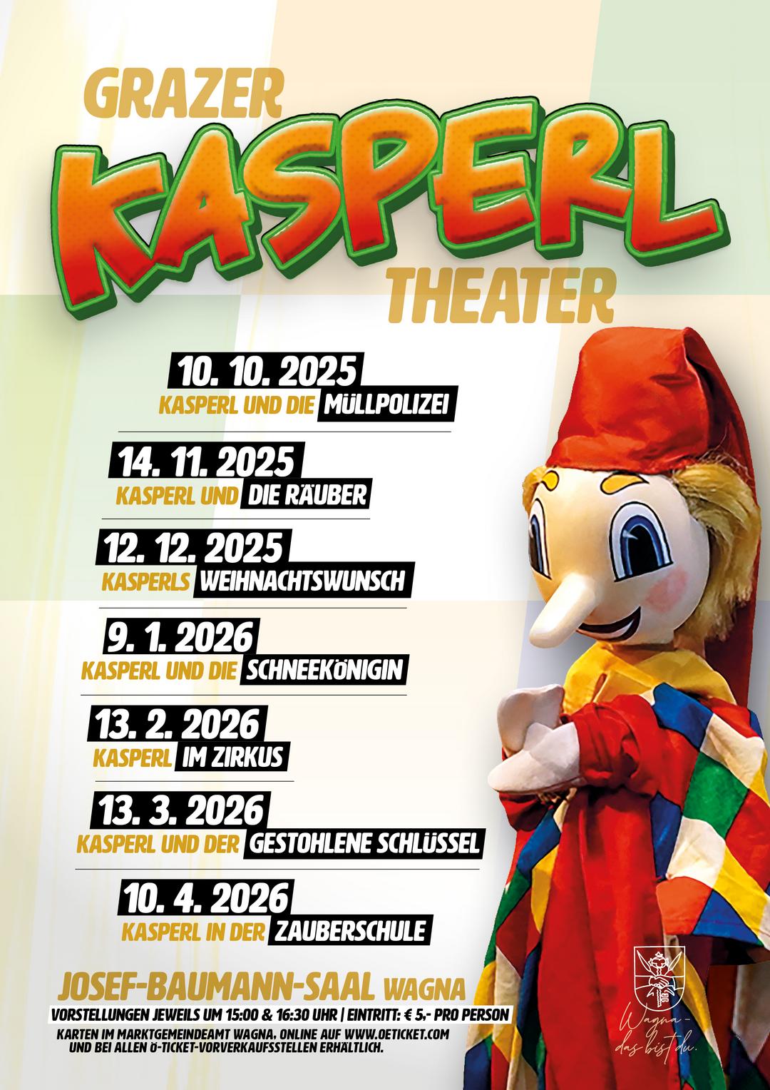 Der Eintritt beträgt € 5,00 pro Person (altersunabhängig) und es gibt freie Platzwahl im Saal, mit der Bitte an die "großen" Kasperlfans, die ersten Reihen für die "kleinen" Theaterbesucher freizuhalten.